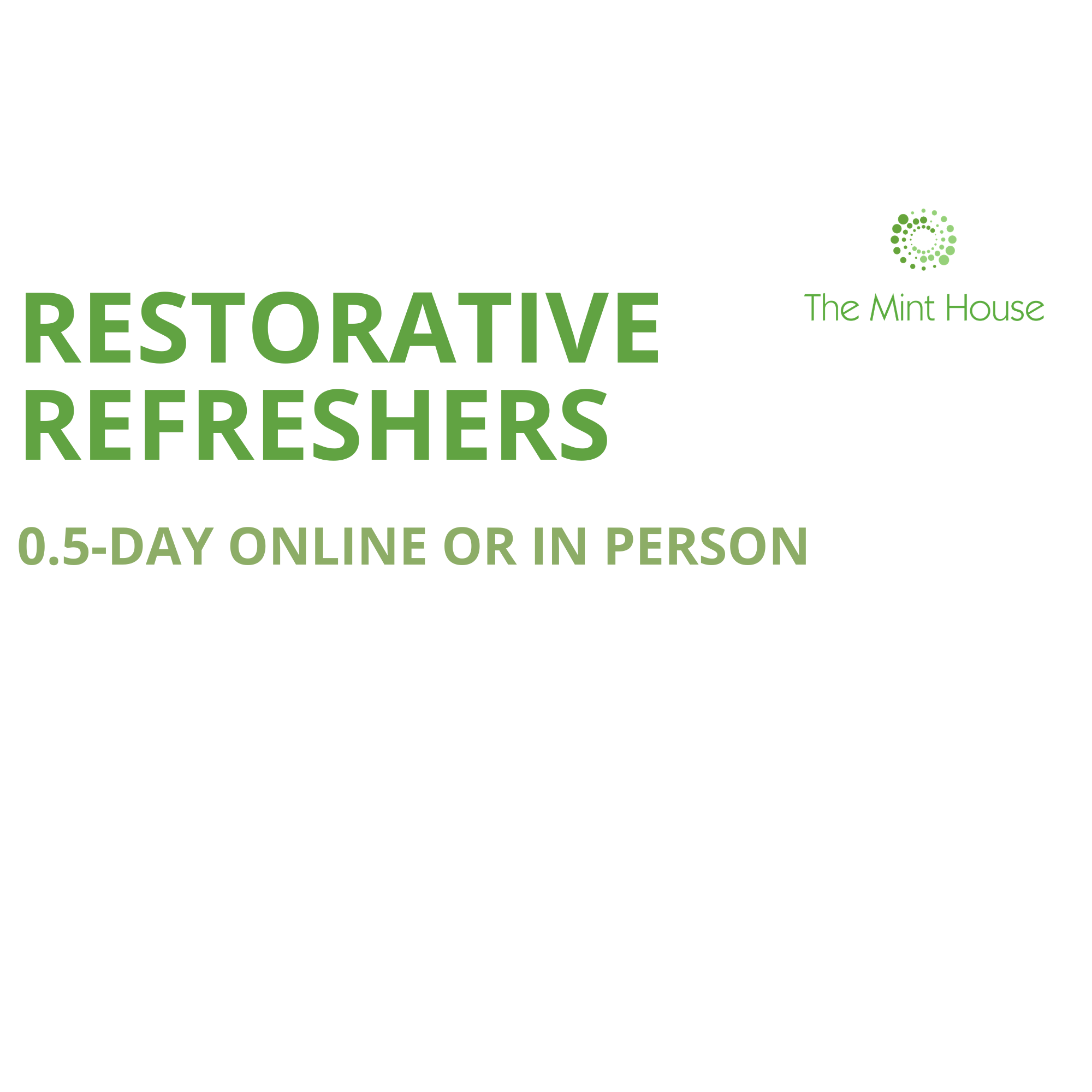 Restorative Refreshers (.5 day courses, online or in-person)